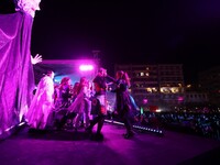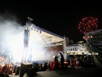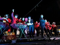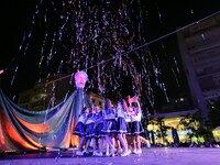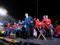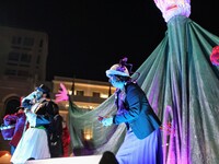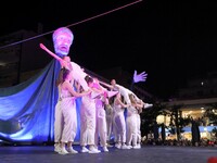 Η τελετή ξεκίνησε με δύο πομπές μεταμφιεσμένων καρναβαλιστών, οι οποίες έφθασαν στην πλατεία υπό του ήχους κρουστών, ενώ το καλλιτεχνικό κομμάτι είχε έντονους χορευτικούς ρυθμούς.