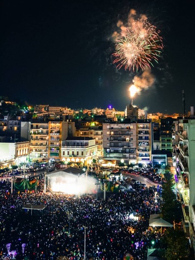 Η παρακάτω φωτογραφία προδίδει την ατμόσφαιρα που επικρατούσε με τον κόσμο να έχει πλημμυρίσει την πλατεία και τα πυροτεχνήματα να φωτίζουν τον ουρανό της Πάτρας!