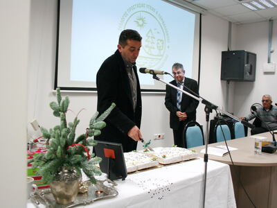 Επίσης έγινε και η κοπή της πίτας των 38 συνεργαζομένων Πολιτιστικών Συλλόγων της 9ης γιορτής τσίπουρου.