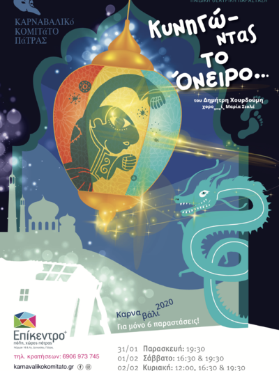 Η φετινή παιδική θεατρική παραγωγή του Καρναβαλικού Κομιτάτου Πάτρας για τους μικρούς μας φίλους με τίτλο «Κυνηγώντας το όνειρο» σε σκηνοθεσία του Δημήτρη Χουρδούμη & κείμενα των Κώστα Κατσιγιάννη, Δημήτρη Χουρδούμη ανεβαίνει στο θέατρο Επίκεντρο+ μόνο για τρεις μέρες και συνολικά 6 παραστάσεις: