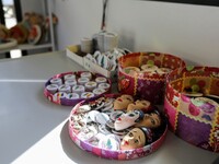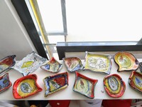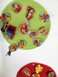 "Εκτός από τα προϋπάρχοντα αναμνηστικά, ήδη έχει αρχίσει η διάθεση των μικρών πήλινων κεραμικών αντικειμένων που ήταν το αποτέλεσμα της πρόσκλησης που έκανε η Κοινωφελής Επιχείρηση του Δήμου Πατρέων – Καρναβάλι Πάτρας στους κεραμίστες της πόλης. Έτσι η άμεση ανταπόκριση είχε ως αποτέλεσμα και τον άμεσο εμπλουτισμό του περιπτέρου και ήδη η υποδοχή από τον κόσμο είναι πολύ θερμή αφού το νέο υλικό του περιπτέρου προσφέρει μια πολύ καλή ευκαιρία για εξαιρετικές αγορές σε πολύ καλές τιμές. Ο επισκέπτης του περιπτέρου μπορεί να βρει θαυμάσιες καρφίτσες πέτου, κοσμήματα λαιμού-πήλινα μενταγιόν, καλαίσθητα σταχτοδοχεία, σφηνοπότηρα, μαγνητάκια, κούπες καφέ, κεραμικά τοίχου («Καρναβαλικές Κυρίες») κ.α. καθώς και το συλλεκτικό φετινό pin (κονκάρδα) του 55ου Παιχνιδιού Κρυμμένου Θησαυρού, που κυκλοφόρησε σε περιορισμένα αντίτυπα.