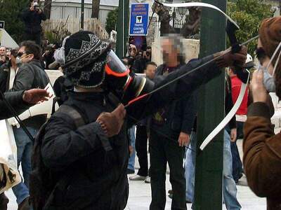 Τον Φεβρουάριο του 2011, κατά τη διάρκεια των επεισοδιακών διαδηλώσεων στο κέντρο της Αθήνας κατά των μνημονίων, έγινε γνωστός ως «Τοξοβόλος», όταν σήκωσε το τόξο του και εκτόξευσε βέλη εναντίον αστυνομικών των ΜΑΤ.