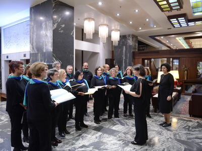 Επίσης, η Χορωδία της Κοινο-τοπίας με την Μαέστρο Λίνα Γερονίκου παρουσίασε επίκαιρες μελωδίες.