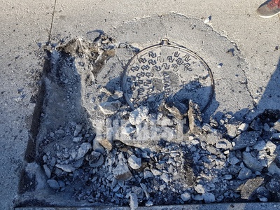 Συνεργεία της ΔΕΥΑΠ έχουν ξεκινήσει να κόβουν ένα τετράγωνο τμήμα του δρόμου γύρω από κάθε καπάκι, σε μήκος και πλάτος 1,80 cm ώστε να τοποθετήσουν μεταλικό πλέγμα και πάνω σε αυτό να εδράσουν νέα υποδοχή για τα μεταλικά καπάκια.