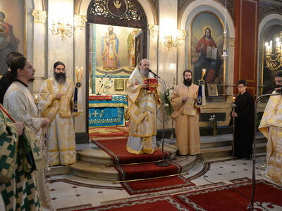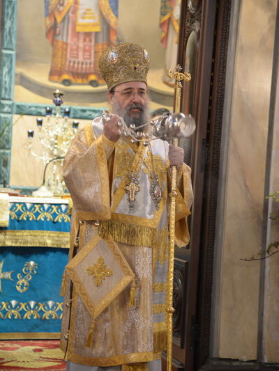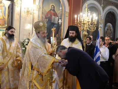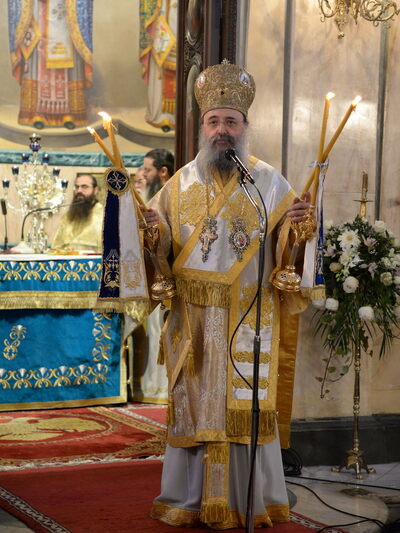 Ανήμερα της εορτής, την Πέμπτη ο κ.κ. Χρυσόστομος χοροστάτησε στην Θεία λειτουργία στο ναό της Ευαγγελίστριας