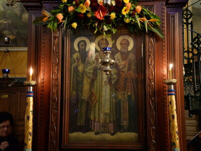 Ανήμερα την Πέμπτη 30/1, τέλεσε την Θεία Λειτουργία στον Ιερό Ναό του Αγίου Νεκταρίου Πατρών & κήρυξε τον θείο λόγο αναφερθείς στις προσωπικότητες των Τριών Ιεραρχών.