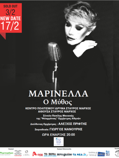 Η Μαρινέλλα παρουσίασε με τεράστια επιτυχία μία ιδιαίτερη παράσταση με τίτλο «Ο Μύθος», τη Δευτέρα 3 Φεβρουαρίου, στην Αίθουσα Σταύρος Νιάρχος, στο Κέντρο Πολιτισμού Ίδρυμα Σταύρος Νιάρχος, στην Αθήνα όπου όπως ήταν λογικό γνώρισε την αποθέωση από το κοινό!