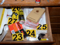 Κατά τη διάρκεια της έρευνας στο διαμέρισμα, όπως ανακοινώθηκε από την αστυνομία, μεταξύ άλλων, βρέθηκαν και κατασχέθηκαν: Δύο κάρτες μνήμης με δύο αντάπτορες, κάρτα SIM και στέλεχος κάρτας SIM, πολυμηχάνημα-εκτυπωτής, Tablet και τρία USB stick, συσκευή κινητής τηλεφωνίας και κάρτα SIM, ανταλλακτικά, αξεσουάρ και παρελκόμενα για Drone, πλήθος από σακούλες, καλώδια, ζελατίνες πλαστικοποίησης και κλειδιά, φωτογραφίες ταυτότητας του Ιωάννη Μιχαηλίδη, όμοιες με αυτή που υπήρχε σε πλαστό δελτίο ταυτότητας που κατείχε, πλήθος από ρούχα (ανδρικά και γυναικεία) και υποδήματα.