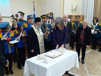 Πολλές ευχές έδωσε ο αιδεσιμότατος π. Αιμίλιος Τσικνής από την Χίο, ο οποίος ευλόγησε την πρωτοχρονιάτικη πίτα.