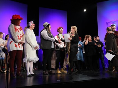 Το 1ο Βραβείο Κοινού απένειμε η πρόεδρος της Κοινωφελούς Επιχείρησης του Δήμου Πατρέων-Καρναβάλι Πάτρας Ήρα Κουρή η οποία υπογράμμισε την αξία του ερασιτεχνικού θεάτρου, του εθελοντισμού, της σάτιρας και του γέλιου και της δημιουργίας που προσφέρει τόσα χρόνια το φεστιβάλ στην κοινωνία της Πάτρας και κάλεσε τις θεατρικές ομάδες από όλη την Ελλάδα να επισκεφτούν την Πάτρα και στο τελευταίο τριήμερο στην κορύφωση του Πατρινού Καρναβαλιού.