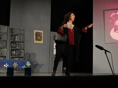 Η Κατερίνα Λειβαδά ως δασκάλα Α-γαμίου και ο Νίκος Πραγιάννης ως διευθυντής σχολείου κος Μακριδάκης ήταν και οι παρουσιαστές της εκδήλωσης. Οι ρόλοι τους ήταν εμπνευσμένοι από τη συνολική ιδέα των συνδετικών ιντερμεδίων του Ερασιτεχνικού Σχήματος Πάτρας «Ρεφενέ» με θέμα την επιστροφή στα θρανία, που ζωντάνεψαν από τους ερασιτέχνες ηθοποιούς: Ελένη Αγγελοπούλου, Πέπη Γαλανοπούλου, Θεοφάνη Γιαλυψό, Ειρήνη Γαλιατσάτου, Ευδοκία Διαμαντοπούλου, Λίλη Κουτρούκη, Χρύσλα Μελά, Θοδωρή Σίδερη, Θεόδωρο Στεφανίδη και Μαρία Χονδρομάρα και άφησαν εξαιρετικές εντυπώσεις. Ανάμεσα σε αυτές τις εμπνευσμένες από τη σχολική ζωή και τα «μαργαριτάρια των μαθητών» μουσικοθεατρικές γέφυρες μεταξύ των δεκαλέπτων των θεατρικών ομάδων, ακούσαμε … ευφάνταστες σχολικές ατάκες μέσω τραγουδιών όπως ο «Επαγγεματικός Προσανατολισμός» του Λουκιανού Κηλαηδόνη, μάθαμε πως η απάντηση στο ερώτημα «Πού είναι η Λάρισα» είναι «Πέμπτη μετά τον Ολυμπιακό!» και είδαμε ένα ζευγάρι ηλικιωμένων να κάθεται στο παγκάκι κοιτώντας ο καθένας εκ των δυο σε διαφορετική κατεύθυνση αλλά όταν ο σύζυγος έδωσε το χαπάκι στη σύζυγο που τον παρακαλούσε και βρέθηκε στην ανάγκη του λόγω … υγείας, μονιασμένοι οι δυο τους φιλήθηκαν και αποχώρησαν με τη μουσική υπόκρουση του τραγουδιού «Όταν πηγαίναμε μαζί σχολείο…». Στο φινάλε και μέσω του πασίγνωστου σατιρικού τραγουδιού του Χάρρυ Κλυνν «Ουγκαγκα μπουμ μπουμ» με στίχους διαχρονικά … «σχολικούς» το θερμό χειροκρότημα του κοινού ήταν η ιδανική επιβράβευση για όλους τους συντελεστές και σφράγισε τη μεγάλη επιτυχία της φετινής διοργάνωσης.