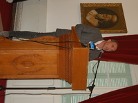Όπως είπε κατά την διάρκεια της ομιλίας του «...σκοπός της Επιτροπής είναι η οργάνωση και η δημιουργική συνεργασία για την καλύτερη προετοιμασία των εκδηλώσεων και δράσεων εν όψει του Πανελλήνιου εορτασμού της συμπλήρωσης 200 ετών από την Ελληνική Επανάσταση. Σ' αυτό τον εορτασμό το Μεσολόγγι -η πόλη των Ελεύθερων Πολιορκημένων- διαδραμάτισε ρόλο κορυφαίο και καταλυτικό. Πρέπει να τιμηθεί όπως αξίζει κι επιβάλλεται από την ίδια μας την συνείδηση. Πρέπει το διαχρονικό της μήνυμα να φτάσει σε κάθε τόπο και σε κάθε ελεύθερη ψυχή. Και σ αυτό έχουμε πολύτιμους συμμάχους. Έχουμε την στήριξη ανθρώπων, μαχόμενων και δημιουργικών, που κατέκτησαν άξια κάθε διάκριση στη ζωή τους».