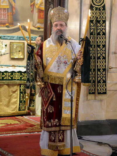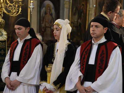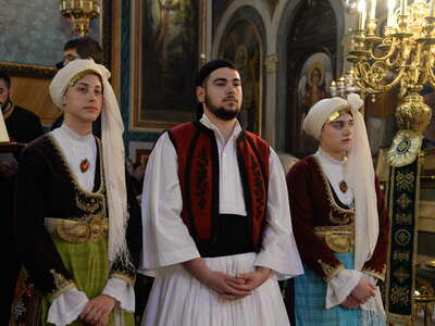 Κατά τήν ὣρα τῆς Θείας Λειτουργίας καί τοῦ Μνημοσύνου τιμητικά παρίσταντο νέοι καί νέες, ἐνδεδυμένοι μέ τίς ἐθνικές ἐνδυμασίες, τούς ὁποίους ἐπήνεσε καί εὐχαρίστησε ὁ Σεβασμιώτατος.