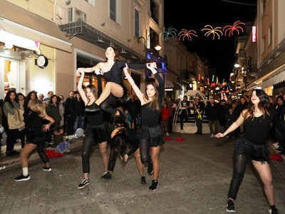 Αμέσως μετά την ολοκλήρωση της παράστασης ήρθε η ώρα για ξέφρενο χορό στο κλίμα των ημερών και της καρναβαλικής διάθεσης. Η θαυμάσια ομάδα χορού Rising Flames με την καθοδήγηση της Μαρίας Σιολέ χάρισε δυναμικές χορογραφίες με εξωστρέφεια και αστείρευτο καρναβαλικό κέφι ξεσηκώνοντας τους θεατές και μεταδίδοντας τα αποθέματα της διασκέδασης και του χορού κλείνοντας με τον καλύτερο και πιο ζωντανό τρόπο το γεμάτο καρναβαλικών δράσεων.
