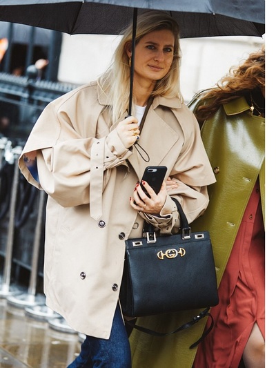 Από την πρώτη μέρα της εκκίνησης της London Fashion Week με τις κολεξιόν του επόμενου χειμώνα, οι φωτογραφικές κάμερες ξεχύθηκαν στους δρόμους για να απεικονίσουν το τωρινό dress code σε στυλίστες, bloggers, μοντέλα, εκπροσώπους των fashion media, αγοραστές κλπ Αυτό λοιπόν που παρατηρήθηκε είναι πως καμία ενημερωμένη κοκέτα δεν φοράει πια την τσάντα στον ώμο! Με αφορμή το «κύμα» των δημοφιλών σχεδίων χωρίς μακρύ λουρί, όλα τα είδη τα κρατάνε στο χέρι (ακόμα αν υπάρχει η πρακτική δυνατότητα να ελευθερωθούν τα χέρια τους). Τα labels Bottega Veneta, Dior, Louis Vuitton, Gucci κυριαρχούν στις προτιμήσεις των κυριών ενώ τα μπεζ, τα καμηλό, τα καφέ και γενικότερα οι γήινοι τόνοι ρούχα ανταγωνίζονται τα μπλε και τα γκρι στην καθημερινή stylish γκαρνταρόμπα με τα ανδρόγυνα στοιχεία. Δείτε φωτογραφίες