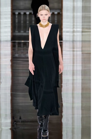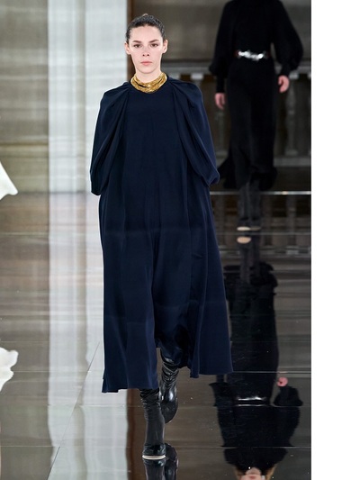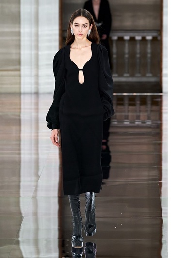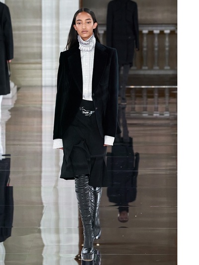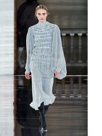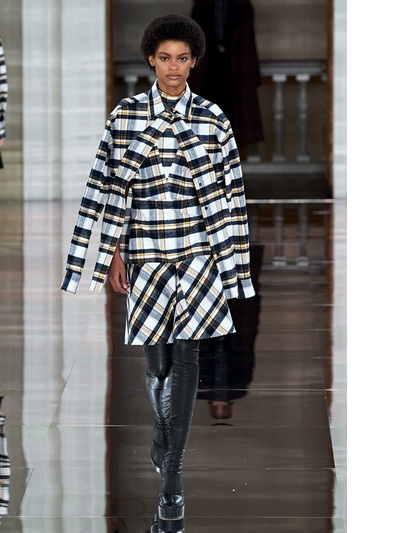 Οι προτάσεις Victoria Beckham για τον επόμενο χειμώνα είναι όπως πάντα λιτές και κομψές. Τα καρό, τα πλούσια μανίκια, οι όρθιοι λαιμοί και οι δίπατες πλατφόρμες στις μπότες ήταν οι λεπτομέρειες που ξεχώρισαν. Σύμφωνα με τη σχεδιάστρια δούλεψε με σύνθημα «Να μην ακολουθούμε κανόνες αλλά το ένστικτό μας…»