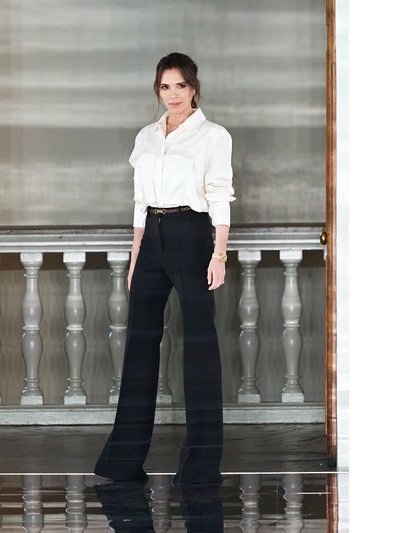 Oι δίπατες μπότες ήταν το αξεσουάρ της επίδειξης που πολυσυζητήθηκε, ενώ η Βικτόρια φορούσε στο φινάλε λευκό πουκάμισο και μαύρο παντελόνι