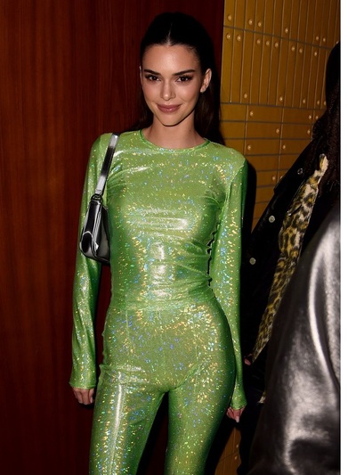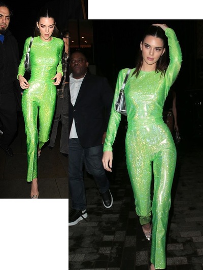 Αδύνατον να μην κοιτάξει κανείς την καλιφορνέζα super model Κένταλ Τζένερ στο νυχτερινό Λονδίνο: Ηταν σαν… πυγολαμπίδα με εκτυφλωτικό γκλίτερ σύνολο σε φλούο πράσινο χρώμα στο Sony after party μετά την απονομή των καθιερωμένων μουσικών βραβείων Brit Awards. Συγκεκριμένα, η 24χρονη μελαχρινή καλλονή ανέδειξε την άψογη σιλουέτα της με τοπ και παντελόνι Shimmer by Saks Potts σε συνδυασμό με τσάντα By Far και διάφανα γοβάκια slingback με κρύσταλλα Αmina Muaddi.