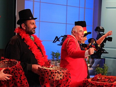 Οι σοκολατορίχτες με την χαρούμενη διάθεση και τις δημοφιλείς σοκολατορίψεις τους έδωσαν τον απαραίτητο αποκριάτικο τόνο διαφημίζοντας το αναλλοίωτο στο πέρασμα του χρόνου έθιμο του σοκολατοπόλεμου και το Πατρινό Καρναβάλι στην εκπομπή «Καλημέρα Ελλάδα» του Γιώργου Παπαδάκη στον ΑΝΤ1, και στην εκπομπή «Αλήθειες με τη Ζήνα» της Ζήνας Κουτσελίνη του τηλεοπτικού καναλιού Star TV.
