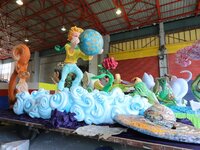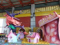 Το πρώτο άρμα θα είναι η πολύχρωμη «Χαρούμενη Τούρμπο-Μάγισσα», που η μορφή του αποτυπώνει τη μάγισσα του παραμυθιού να πετά καβαλώντας δυο σκούπες πάνω από τα σπίτια ενός πολύχρωμου χωριού, ενώ θα υπάρχει και ένα κάστρο.