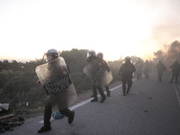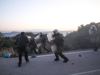 Οι αστυνομικές δυνάμεις έκαναν χρήση χειροβομβίδων κρότου λάμψης και χημικών ενάντια στους συγκεντρωμένους που διαμαρτύρονται για την επίταξη και τη νέα κλειστή δομή που σχεδίαστηκε να κατασκευαστεί στη Λέσβο. Ας σημειωθεί ότι κατά την επίθεση με τα χημικά ξέσπασαν μικρές πυρκαγιές σε δασική έκταση, οι οποίες αντιμετωπίσθηκαν άμεσα.