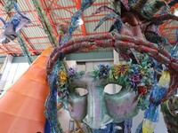 Το καλλιτεχνικό άρμα «Πέσανε οι μάσκες» (ιδέα, σχεδιασμός, υλοποίηση: Δημήτρης Ντζουμάνης) αποτελεί μια εντυπωσιακή κατασκευή με μάσκες διαφορετικού μεγέθους πάνω σε ανισοϋψείς σωλήνες που τοποθετούνται κλιμακωτά με τη μεγαλύτερη μπροστά και τη μικρότερη τελευταία. Το άρμα είναι φωτιζόμενο και τα βλέφαρα στις μάσκες ανάβουν και φωτίζονται με μπλε φωτοσωλήνα.