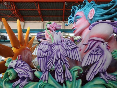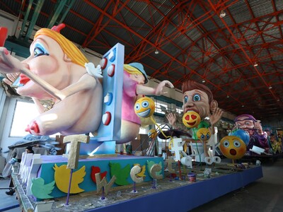 Οι τελευταίες πινελιές προετοιμασίας μπαίνουν στο Καρναβαλικό Εργαστήρι του Δήμου Πατρέων όπου τα άρματα παίρνουν τη θέση της εξόδου