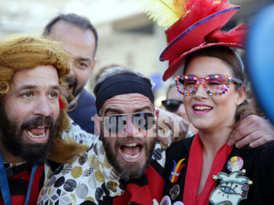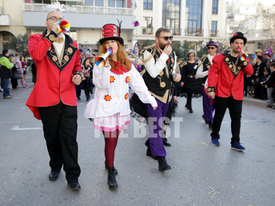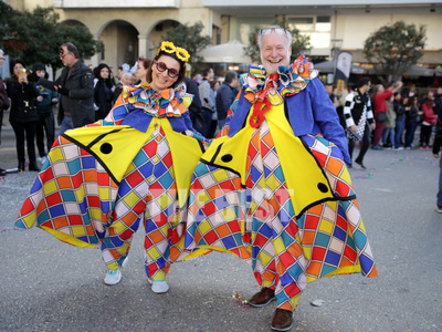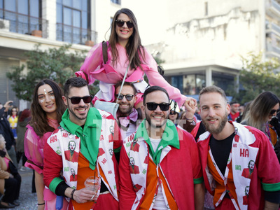 Η παρέλαση των καρναβαλιστών, που έγινε χωρίς άρματα, ακολούθησε την παλιά διαδρομή με εκκίνηση την πλατεία Ομονοίας και πέρασε από την Γούναρη και την Κορίνθου, δια μέσου της πλατείας Γεωργίου.