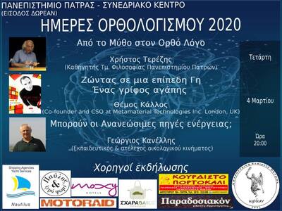 Ο «Ωρίων» προσκαλεί το κοινό στην 1η «Ημέρα Ορθολογισμού 2020» στην Πάτρα, την Τετάρτη 4 Μαρτίου και ώρα 20:00 στο αμφιθέατρο Ι4 του Συνεδριακού Κέντρου του Πανεπιστημίου Πατρών. Το πρόγραμμα της πρώτης ημέρας με τις περιλήψεις των ομιλιών καθώς και τα σύντομα βιογραφικά των ομιλητών έχουν ως εξής: