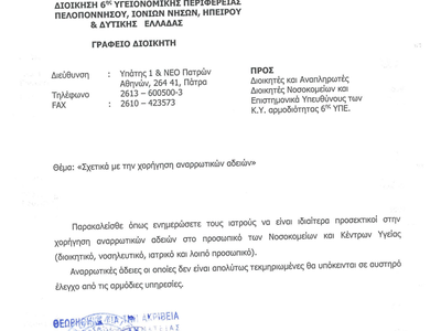 Είναι τουλάχιστον ατυχές το έγγραφο, 10650/6-3-2020, της 6ης ΥΠΕ προς τους γιατρούς της Αχαΐας, τόσο ως προς την διατύπωση, όσο και επί της ουσίας.