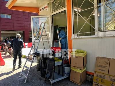 Οι οικίσκοι τοποθετήθηκαν χθες στο προαύλιο του νοσοκομείου Άγιος Ανδρέας και σήμερα οι εργασίες καθαρισμού και απολύμανσης βρίσκονται στο κόκκινο. Σε αυτούς τους οικίσκους θα μεταφέρονται προς εξέταση ύποπτα για κορωνοϊό κρούσματα.