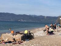 Μπάνιο κάνουν σήμερα λόγω του καλού καιρού και στην Καλόγρια.