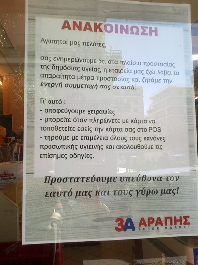 Την ενημερωτική αυτή ανάρτηση την είδαμε στην είσοδο καταστήματος στην Πάτρα.