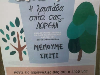 Τέλος να προσθέσουμε πως κάποια μαγαζιά του λιανεμπορίου που κλείνουν από Τετάρτη 18/3 βάσει των νέων μέτρων, και ενόψει της μεγάλης εορτής του Πάσχα που έρχεται, ενημερώνουν πως μπορεί ο κόσμος να παραγγέλνει τις λαμπάδες τους ηλεκτρονικά.