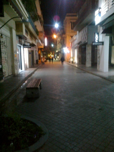 Περπατώντας στις 9.30 το βράδυ στον άλλοτε πολυσύχναστο πεζόδρομο της Ρήγα Φεραίου η εικόνα θύμιζε Δεκαπενταύγουστο με τη διαφορά ότι ακόμη και την κατεξοχήν αργία του χρόνου και του καλοκαιριού, κάποια ελάχιστα μαγαζιά ήσαν ανοικτά για όσους είχαν απομείνει στις επάλξεις της πόλης. Βράδυ Τρίτης 17 Μαρτίου κι ενώ είχαν κλείσει και τα εμπορικά, τα οποία από την Τετάρτη εντάχθηκαν στα περιοριστικά μέτρα και κατέβασαν ρολά μέχρι νεοτέρας, αντίκριζες κατασκότεινες τις καφετέριες με τα καθίσματα μαζεμένα εντός, κάποιους ελάχιστους πολίτες να περπατούν, μία τριμελή παρέα νέων παιδιών που ξεχώριζε από τον ζωηρό τόνο της φωνής τους και με τον κορωνοϊό να είναι το κεντρικό θέμα συζήτησης τους και η μόνη ίσως ένδειξη «ζωής» πως η άνοιξη είναι σε λίγο εδώ όπως και η ελπίδα της «αναγέννησης» της φύσης και μαζί πλέον της διάθεσης όλων μας, ήταν ορισμένες βιτρίνες εμπορικών καταστημάτων που είχαν αρχίσει να βάζουν τα ανοιξιάτικα ρούχα τους.