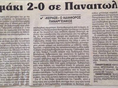 Ε, πρόεδρος του Παναιτωλικού ήταν τότε ο Γιάννης Χαρδαλιάς και του Παναργειακού ο Σταύρος Τσιόδρας! Εντάξει, ξεπεράστε τα μικρά ονόματα αλλά δεν είναι μια… ιστορική συγκυρία;