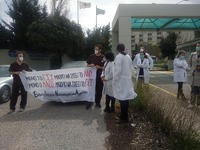 Συμβολικές κινητοποιήσεις με συγκέντρωση αντιπροσωπειών εργαζόμενων στα προαύλια των νοσοκομείων πραγματοποιήθηκε σήμερα, Τρίτη, στo πλαίσιo της απόφασης της ΟΕΝΓΕ για πανελλαδικές δράσεις, με επίκεντρο το νοσοκομείο ΠΓΝΠ στο Ρίο.