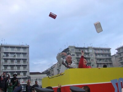 35 χιλιάδες καρναβαλιστές συμμετείχαν σε 150 πληρώματα και έδωσαν τον καλύτερό τους εαυτό για τη διατήρηση του θεσμού. Και η φετινή παρέλαση έκλεισε με τα άρματα των σοκολατοριχτών που μοίρασαν σοκολάτες στους χιλιάδες καρναβαλιστές αλλά και τους πολλούς θεατές που επίσης παρά τη βροχή παρέμειναν επί ώρες στις θέσεις τους για να χειροκροτήσουν τα μέλη των καρναβαλικών πληρωμάτων.