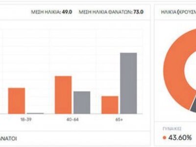 Η μέση ηλικία των κρουσμάτων είναι τα 49 έτη, ενώ στα 73 χρόνια ορίζεται η μέση τιμή των θανάτων.
