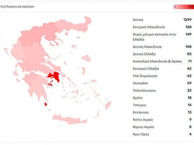 Όσο για τη γεωγραφική κατανομή των επιβεβαιωμένων κρουσμάτων, η Αττική συγκεντρώνει τη συντριπτική πλειοψηφία των περιπτώσεων, με συνολικά 1299 ασθενείς.