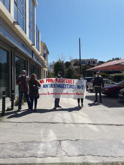 Κινητοποίηση – παράσταση διαμαρτυρίας εκπροσώπων της Αγωνιστικής Συσπείρωσης Εκπαιδευτικών Αχαΐας (με όλα τα αναγκαία μέτρα ατομικής προστασίας) στον Περιφερειακό Διευθυντή Εκπαίδευσης πραγματοποιήθηκε σήμερα Πέμπτη 16/4 στις 11:30.