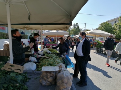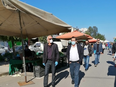 Ο Δήμαρχος Πατρέων, Κώστας Πελετίδης, μαζί με τον Αντιδήμαρχο Διοίκησης και Οικονομικών, Διονύση Πλέσσα και τον Διευθυντή της αρμόδιας υπηρεσίας του Δήμου, Βασίλη Τσιγάρα, επισκέφθηκαν σήμερα το πρωί, Μ. Σάββατο 18 Απρίλη, λαϊκές αγορές της Πάτρας. Ο Δήμαρχος αντάλλαξε ευχές με δημότες, παραγωγούς και γενικά τους επαγγελματίες που δραστηριοποιούνται στο χώρο των λαϊκών αγορών, ελέγχοντας παράλληλα και τα μέτρα προστασίας που έχει λάβει ο Δήμος.