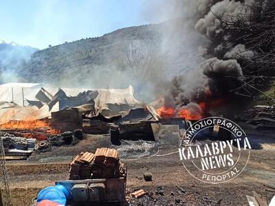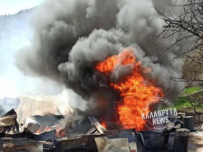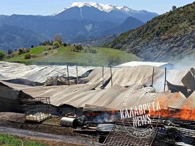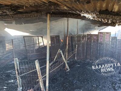 Στις φλόγες τυλίχτηκε χθες, Μεγάλο Σάββατο ποιμνιοστάσιο στην Κερπινή Καλαβρύτων και καταστράφηκε ολοσχερώς. Στο σημείο επενέβησαν άμεσα 10 άντρες της Πυροσβεστικής Υπηρεσίας Καλαβρύτων με 5 οχήματα και επικεφαλής τον υποδιοικητή της Π.Υ.Καλαβρύτων κ. Τζούδα και όχημα της πολιτικής προστασίας του Δήμου Καλαβρύτων.