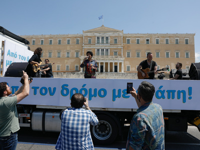 Με τις μελωδίες της Άλκηστις Πρωτοψάλτη πλημμύρισαν σήμερα οι δρόμοι της Αθήνας σε μια ξεχωριστή συναυλία με «σκηνή» ένα φορτηγό, το οποίο για 3,5 ώρες γύριζε στο κέντρο και τις γειτονιές της πόλης κάνοντας πολύ σύντομες στάσεις σε πλατείες αλλά και συμβολικά, σε δύο νοσοκομεία, στο «Σωτηρία» και τον «Ευαγγελισμό» όπου γιατροί και νοσηλευτές δίνουν μάχη ενάντια στον κορωνοϊό.