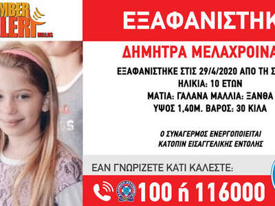 Amber Alert για την εξαφάνιση 10χρονου κοριτσιού σήμερα στη Στυλίδα, στη Φθιώτιδα, εξέδωσε το Χαμόγελο του Παιδιού.