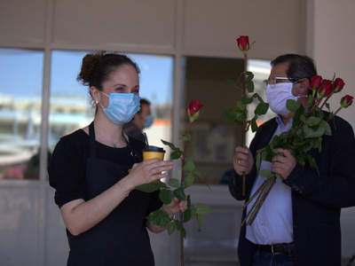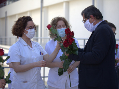 Σε μια συμβολική κίνηση ο Δήμαρχος Πατρέων, Κώστας Πελετίδης, η Πρόεδρος του Πολιτιστικού Οργανισμού, Κατερίνα Γεροπαναγιώτη και μέλη της διοίκησης έδωσαν κόκκινα τριαντάφυλλα στο προσωπικό του Νοσοκομείου «Άγιος Ανδρέας» (γιατρούς νοσηλευτές και υπόλοιπο υγειονομικό προσωπικό).