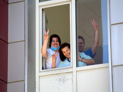 Ο Πολιτιστικός Οργανισμός του Δήμου Πατρέων εξέφρασε με αυτό το συμβολικό τρόπο, την αλληλεγγύη και τη στήριξή του στους γιατρούς, τους νοσηλευτές και σε όλο το υγειονομικό προσωπικό που δίνει άνιση μάχη με την πανδημία, εξαιτίας των τεράστιων ελλείψεων στη Δημόσια Υγεία.