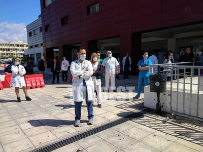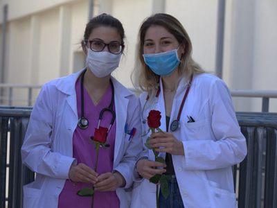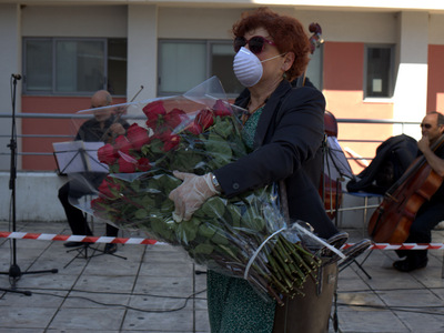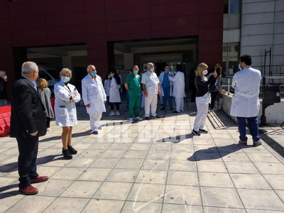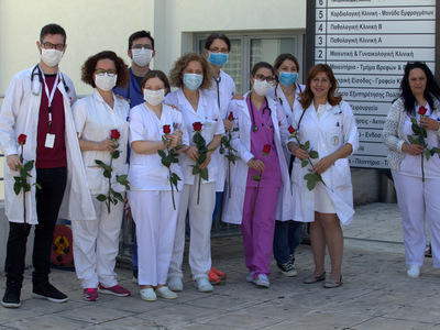 Τέλος, σε μία συμβολική κίνηση, ο δήμαρχος Κώστας Πελετίδης, η πρόεδρος του Πολιτιστικού Οργανισμού, Κατερίνα Γεροπαναγιώτη, και μέλη της διοίκησης έδωσαν κόκκινα τριαντάφυλλα στους γιατρούς, τους νοσηλευτές και στο υπόλοιπο υγειονομικό προσωπικό του νοσοκομείου.