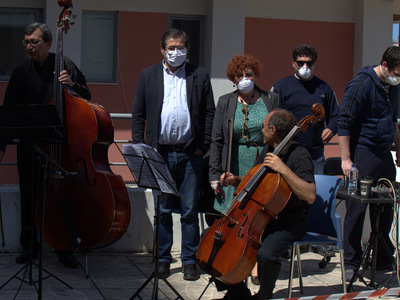 Οι μουσικοί του «Κουιντέτου» βρέθηκαν στον προαύλιο χώρο του νοσοκομείου Πατρών, «Άγιος Ανδρέας», και ερμήνευσαν συνθέσεις κλασσικών δημιουργών, παίρνοντας όλα τα αναγκαία μέτρα προστασίας.