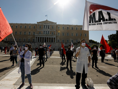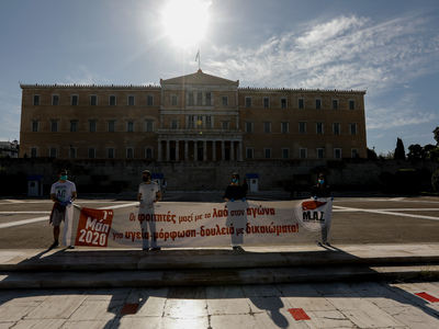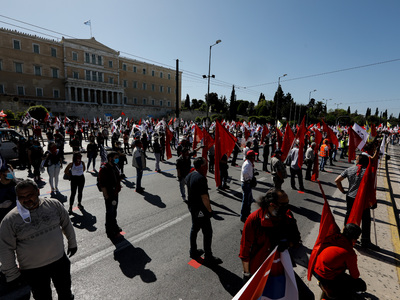 Το ΠΑΜΕ συγκεντρώθηκε στο Σύνταγμα και (παραδοσιακά) μάζεψε πολύ κόσμο. Αλλά λόγω μέτρων κορωνοϊού, η συγκέντρωση για την Πρωτομαγιά έγινε με τη… μεζούρα ανά χείρας.